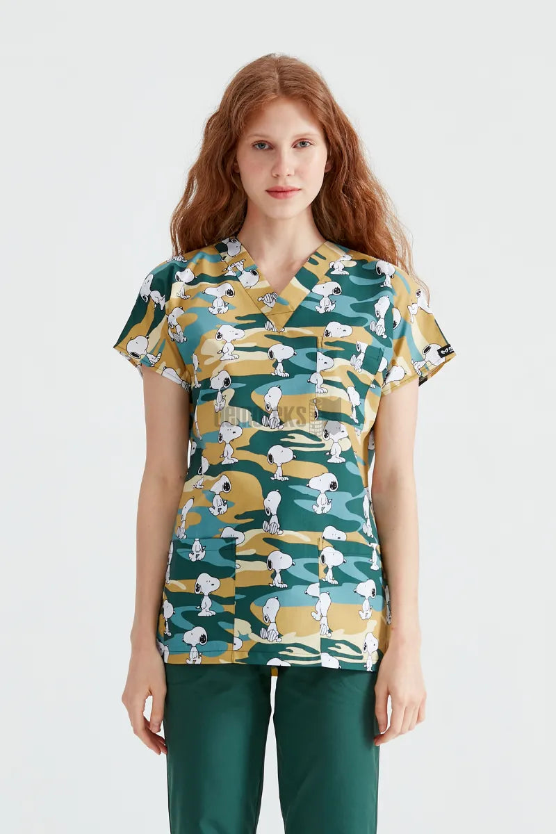 Crafted from a durable 65% polyester and 35% cotton fabric blend, the scrub top ensures breathability, softness, and long-lasting wear. Its classic fit allows for ease of movement, while the printed design adds a modern and personalized touch to your medical wardrobe.